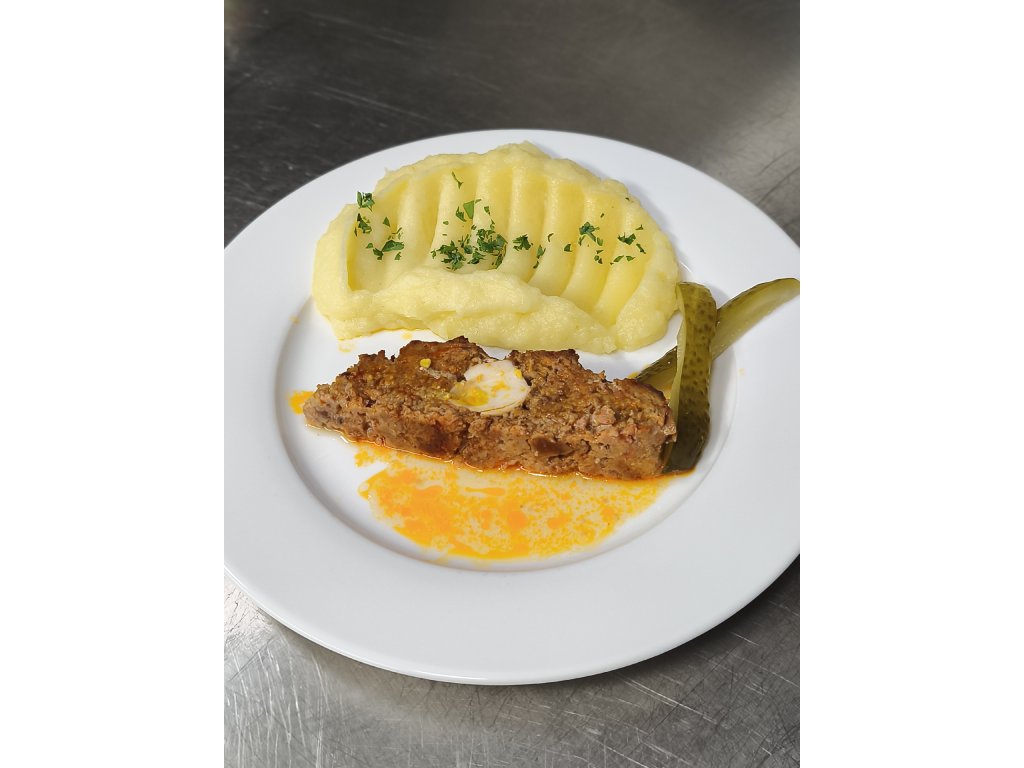 2025-09-04 Čtvrtek, Menu 1 - 150g Domácí sekaná, bramborová kaše, okurka (3,7,10)